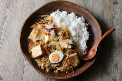 今日のごはんは、肉なし中華丼。 私は「ベジ中華丼」と言っています。